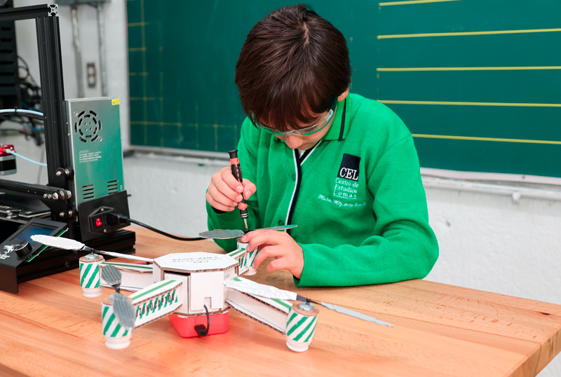 En el CEL, el enfoque STEAM (Ciencia, Tecnología, Ingeniería, Arte y Matemáticas) se implementa en todos los niveles educativos, promoviendo un aprendizaje holístico y conectado con el mundo real. Permite a los estudiantes desarrollar habilidades interdisciplinarias fomentando el pensamiento crítico, creativo y analítico. A través de proyectos colaborativos, aprenden a resolver problemas complejos de forma práctica y a trabajar en equipo, preparándose para un futuro en el que estas competencias son altamente valoradas tanto en el ámbito académico como laboral.